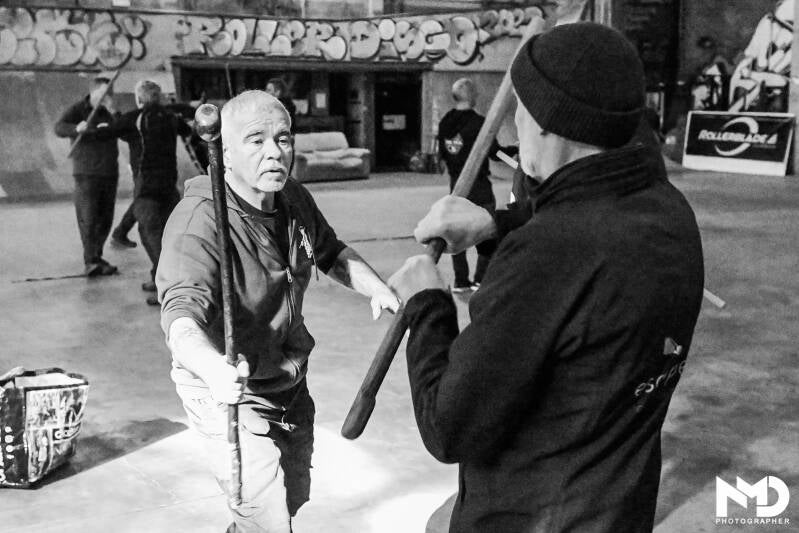 Dit is geen massaproductie. Ik, Thierry Thirionet, ben meester-instructeur bij Cane Fighters International en heb met mijn laatste centen dit stukje aarde gekocht om het perfecte hout te vinden. Vlakbij de oogstplek staat een kleine menhir uit de pre-Keltische periode, een stille getuige die het bos en het hout voorziet van een haast magische energie. Deze unieke herkomst geeft elke stok een ziel.